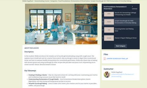 This course brings together 13 step-by-step modules—from fermentation to soil building, animal husbandry to seed saving—so you can master the timeless skills that empower self-sufficiency, food sovereignty, and healthier living.